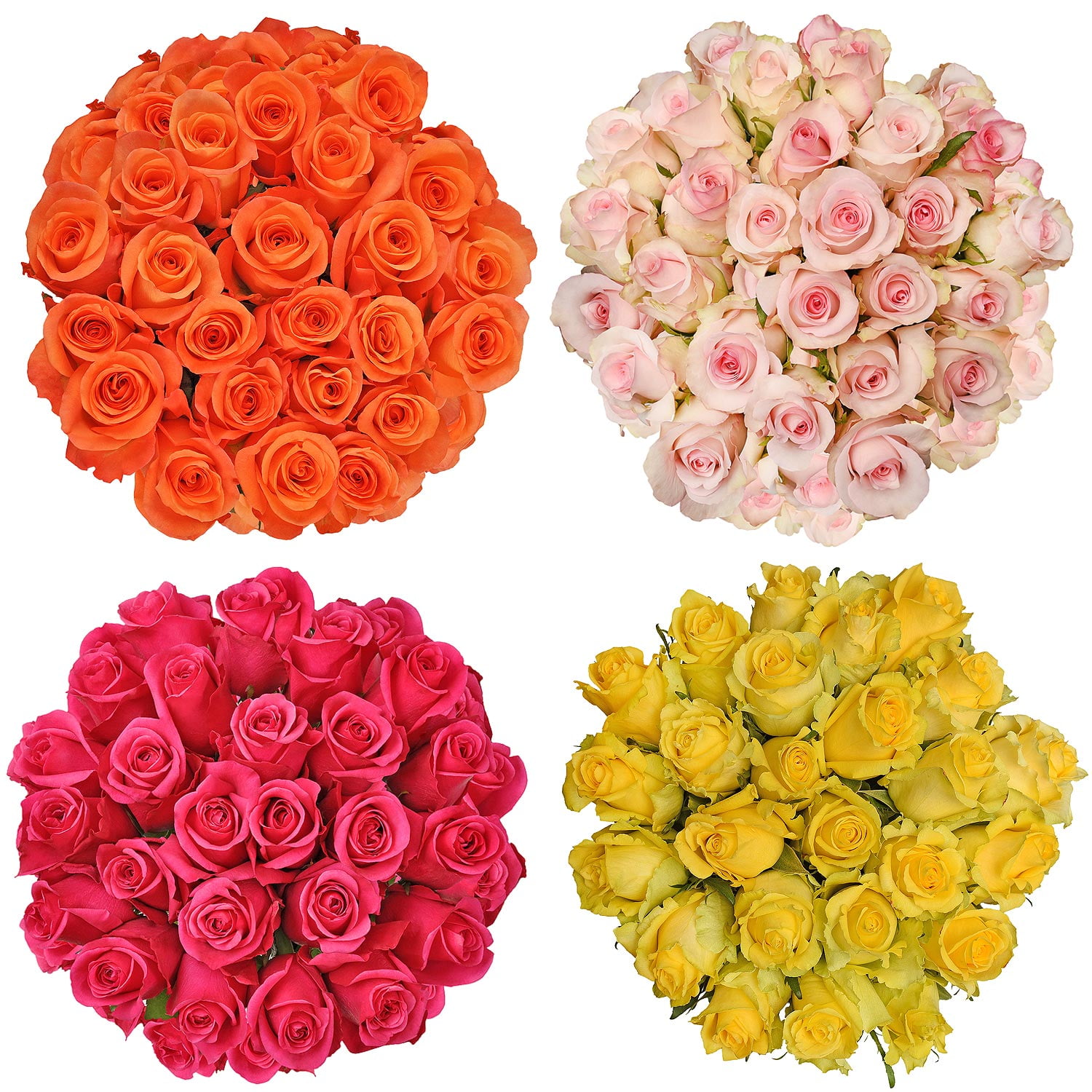 Roses Assorted Color 100 Stems Of 60 Cm Assorted Growers Will Choose From Hot Pink Light Pink Yellow White Orange Colors Farm Direct Fresh Cut Flowers By Bloomingmore Walmart Com